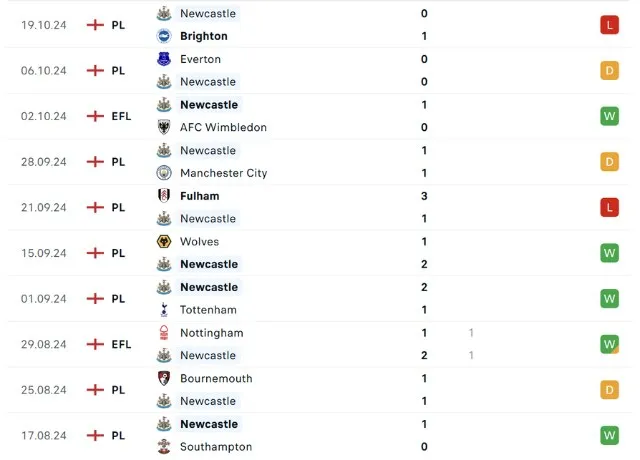 Phong độ thi đấu Newcastle